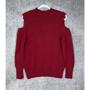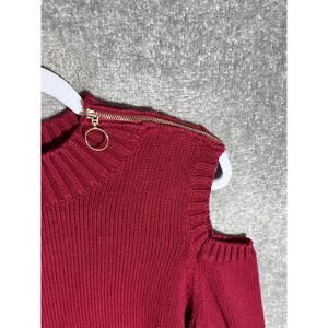 Susan Graver Sweater Womens Size Large Red Mock Neck Cold Shoulder Zipper Detail
