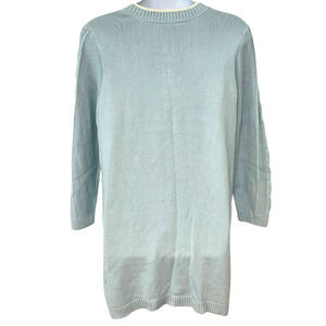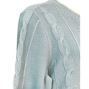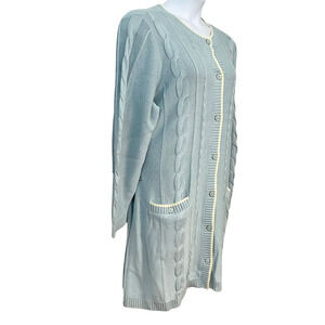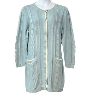 Susan Graver Sz 1X Button Front Topper Cardigan Cable Knit Blue & White A659441