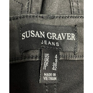 Susan Graver Sz 4 Coated Straight Leg Jeans 29"Wx17"L Sleek Black Denim A624321