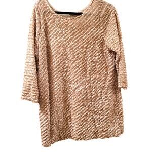 Susan Graver Textured Cream Polka Dot Top Size L Boho Preppy Neutral
