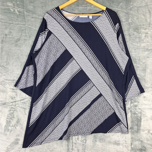 Susan Graver Top 2X Blue Liquid Knit Asymmetrical Tunic Career Office Mature