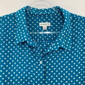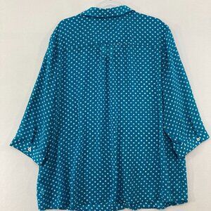 Susan Graver Top 2X Blue White Polka Dot Soft Flowy 3/4 Sleeve Chiffon Button Up