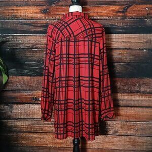 Susan Graver Top Blouse Plus Size 18W Red Black Plaid Button Front