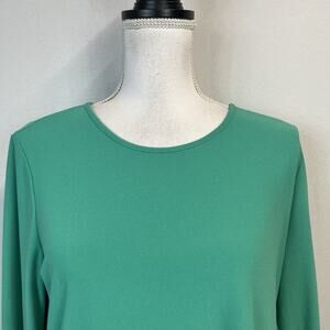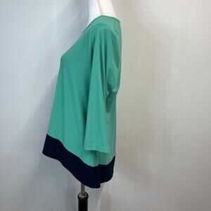 Susan Graver Top Blouse Tunic size Small Green Navy Blue Stretch Career Church
