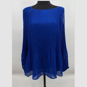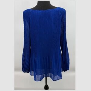 Style: Susan Graver Top Women 2 Blue Cold Shoulder Pleated Long Sleeves Lightweight