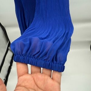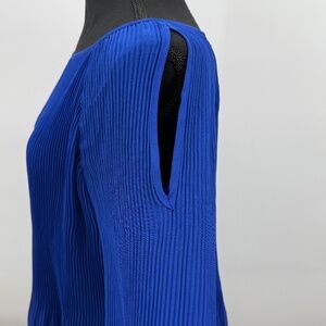 Susan Graver Top Women 2 Blue Cold Shoulder Pleated Long Sleeves Lightweight