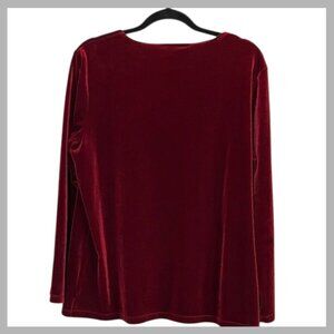 Susan Graver Top Women L Red Velvet Festive Holiday Mature Classic Preppy Santa