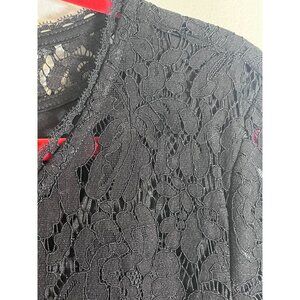 Susan Graver Top Women M Black Floral Lace Mesh Goth Whimsigoth Preppy Classic