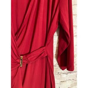 Susan Graver Top Womens 1X Liquid Knit Cherry Red Draped Ruched Stretch Plus