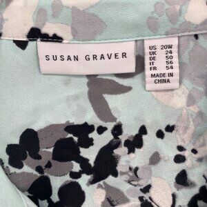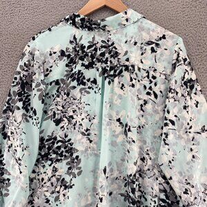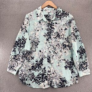 Susan Graver Top Womens 20W Plus Green Floral Button Collar Long Sleeve Blouse