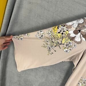 Susan Graver Top Womens 3X Tan Floral Beaded Liquid Knit Stretch Comfort Office