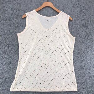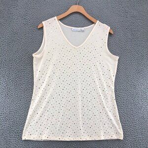 Susan Graver Top Womens Small Ivory Gold Polka Dot Sleeveless Liquid Knit Tank