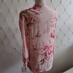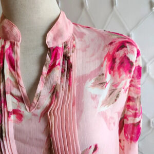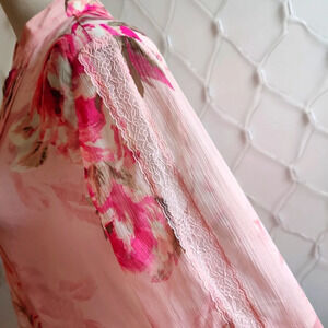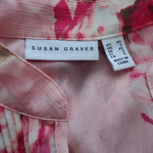 - Susan Graver • Tunic Blouse • Pink Floral Print w/ Lace • X-Small