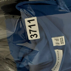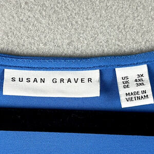 Susan Graver Tunic Top Womens 3X Liquid Knit Blue Puff Shoulder Stretch Casual
