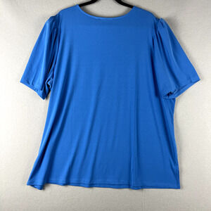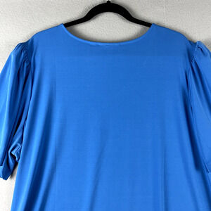 Susan Graver Tunic Top Womens 3X Liquid Knit Blue Puff Shoulder Short Sleeve