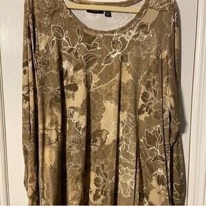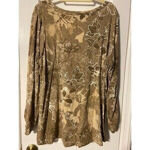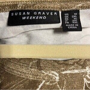 Susan Graver Weekend tunic top with button sleeves. Leaf print design. Size 1X. Gently worn excellent condition
