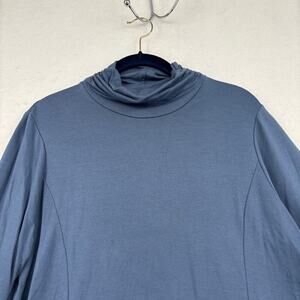 Susan Graver Turtleneck Tunic Size L Petite Blue Jersey Knit Pockets Stretch