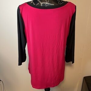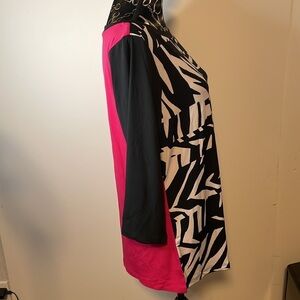 Susan Graver Two Sided Pattern Blouse Size Medium Black/Red/White 3/4 Sleeves