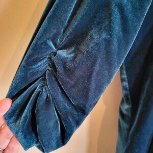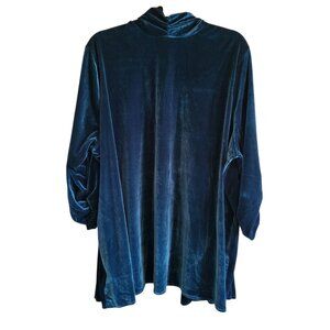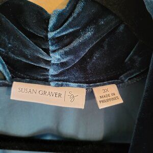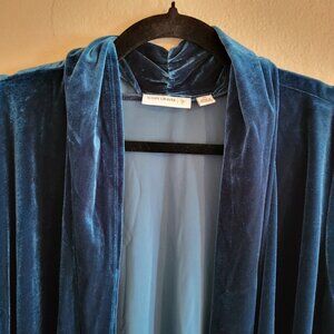 Susan Graver Velvet Cardigan Women's 3X Green Open Front Stretchy Rusched Sleeve
