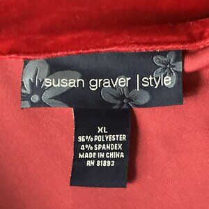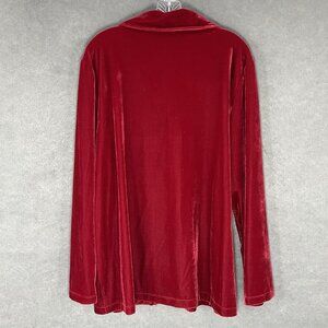 Susan Graver Velvet Tunic Size XL Red Pleated Button Up Blouse Holiday Luxurious