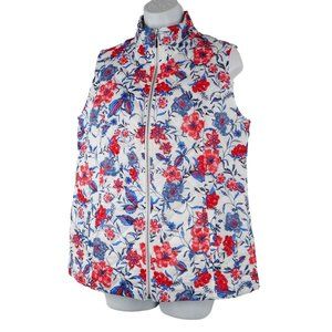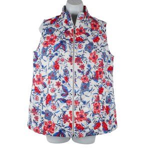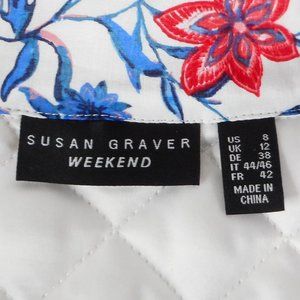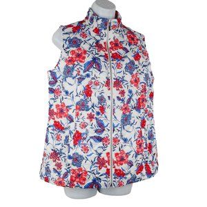Susan Graver Vest 8 White Red Blue Quilted Cotton Zip Floral Weekend A286741