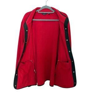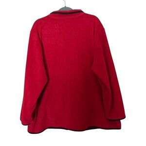 Susan Graver Weekend 3X Red Fleece Snap-Front Jacket Black Trimmed Collar Pocket