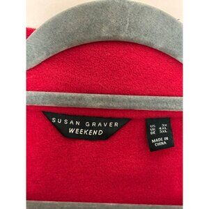 Susan Graver Weekend 3X Red Fleece Snap-Front Jacket With Black Trimmed Collar & Pockets