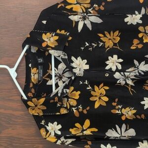 Susan Graver Weekend Black Corduroy Button Down Shirt With Flowers Size 2X