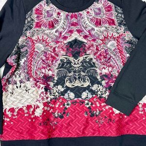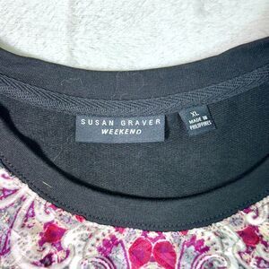 Susan Graver Weekend Black/Pink/White Printed Crewneck Knit Lg Sleeve Top Sz XL