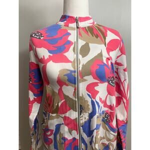 Susan Graver Weekend Floral Zip Up Jacket French Terry Lined Stretch Size XS