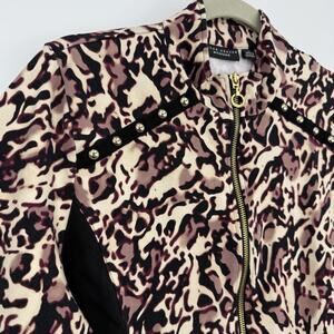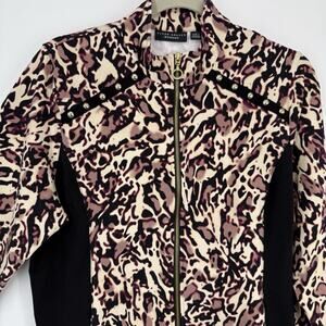 Susan Graver Weekend Jacket Size Large Studded Purple Animal Stretch Full Zip