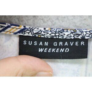 This is a Susan Graver Weekend Long Sleeve Tunic that is a size 2X. It has florals. It is 58% Cotton, 38% Modal, and 4% Spandex. It has some stretch. Laying flat, it measures: Armpit to armpit-27" and the Length is 30". It is in good condition and is very soft.