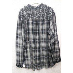 Susan Graver Weekend Plaid Velour Button Down Top-Size 1X-Animal Print Collar
