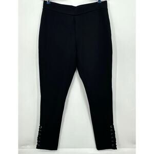Susan Graver Weekend Premium Stretch Leggings Lacing BLACK Womens Size XSP