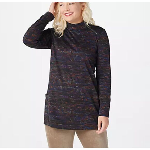 Susan Graver Weekend Printed Ponte Knit Mock Neck Zipper Tunic size 3X Pockets