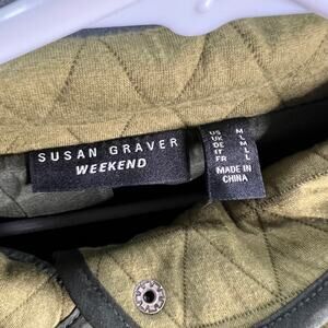 Susan Graver Weekend Quilted Knit Snap Front Mock Neck Jacket Green Size Medium