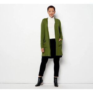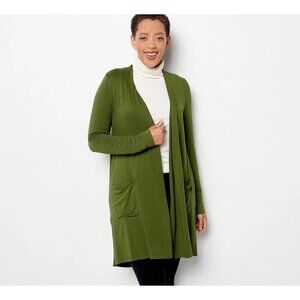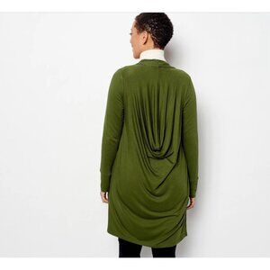 Susan Graver Weekend Regular Jersey Knit Draped Back Cardigan Size XXS Navy NEW
