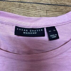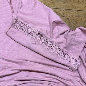Susan Graver Weekend Short Sleeve T-shirt Lace Sleeves Purple Lilac Women's 5X. Condition is Pre-owned. Shipped with USPS Ground Advantage.