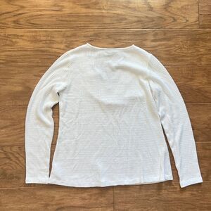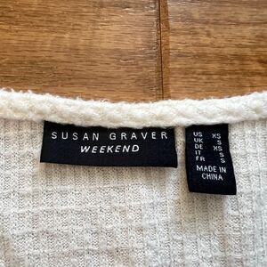 Susan Graver Weekend Top Textured Knit A-Line with Lace Detail in White. Size XS. Style A557566. 80% rayon, 18% polyester, 2% spandex. In good condition.