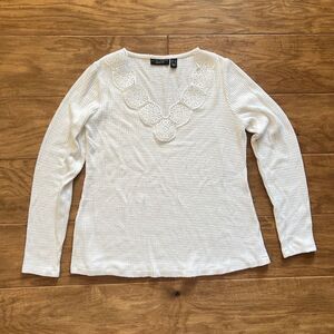 Susan Graver Weekend Top Size XS White Textured Knit A-Line Lace Detail