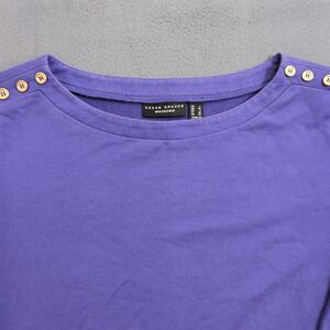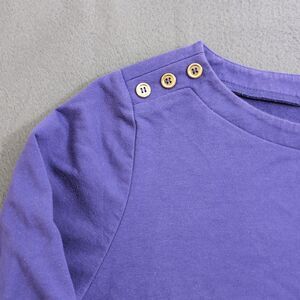 Susan Graver Weekend Women L Purple French Terry Pull Over Sweater Button Detail