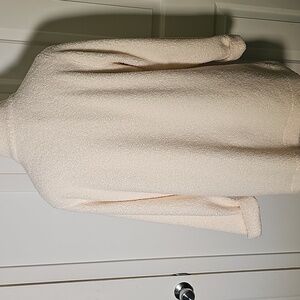 Stay cozy and stylish with this cream button-up coat. Perfect for any occasion, this coat offers both warmth and elegance and comfort.  Oversized medium. large pockets. extra button. 100 % polyester. Great for fall weather, cute with leggings and jeans. Excellent used condition and quality.