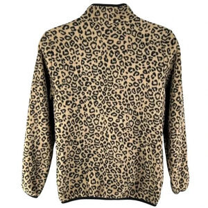 leopard print fleece pullover Susan Graver women's sweatshirt cozy top winter wear animal print long sleeve casual fashion warm layer polyester top zip-up sweater trendy pullover