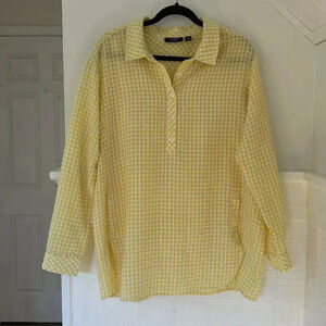 Susan Graver Weekend Yellow and White Gingham Blouse size Large