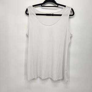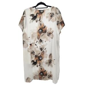 Susan Graver White Floral 2 pc. Tank Sheer Rhinestone Embellished Tunic Women L