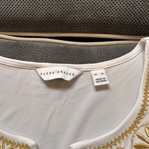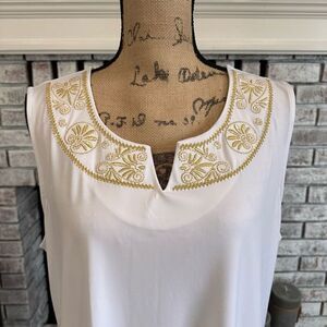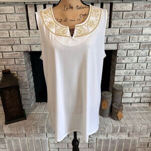Susan Graver White & Gold Liquid Knit Embroidered Sleeveless Blouse Size XL