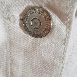Susan Graver Denim Jacket Womens XL White Peplum Eyelet Lace Hem Stretch Cotton