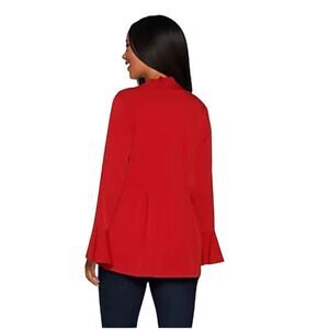 Cardigan Features: open front, long sleeves with ruffle cuffs, back seam detail with two inverted pleats, straight bottom hem