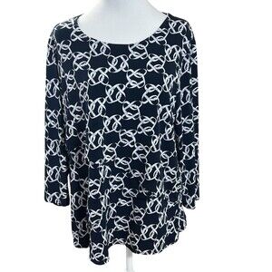 Susan Graver Woman’s L Tiered Top. Nautical Knots Print Navy