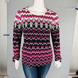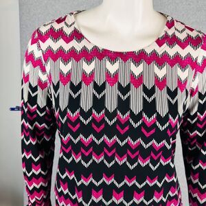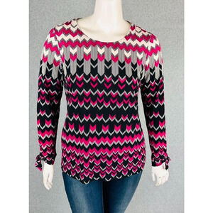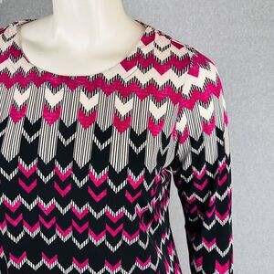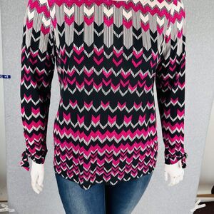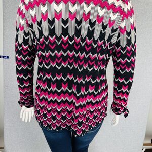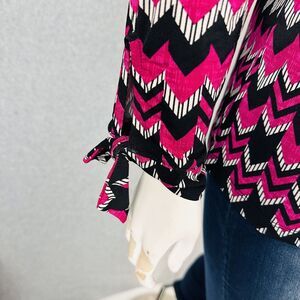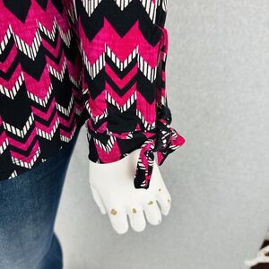 Susan Graver Womans Sz Large Blouse Black Long Tie Sleeve Stretch Abstract